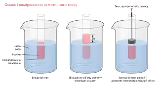1. Дифузія через напівпроникну мембрану компонента з розчину, де хімічний потенціал компонента є вищим, до розчину, де хімічний потенціал компонента менший.