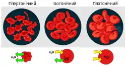 Осмос — це явище, що суттєво впливає на існування живих клітин. Клітинні мембрани більш проникні для води ніж для більшості іонів, малих гідрофільних молекул та макромолекул. Така різниця великою мірою виникає внаслідок наявності в мембранах білків аквапоринів, що пропускають тільки молекули води. Якщо клітина перебуває в ізотонічному розчині (0,9% хлориду натрію або 5% глюкози для людських клітин[3]), вона не втрачає і не набуває води. У гіперотонічому середовищі, тобто у середовищі з більшою осмолярністю, клітина зморщується внаслідок зневоднення, а в гіпотонічому навпаки — набухає, і якщо надходження води не вдається спинити, це призводить до розривання, осмотичного лізису, клітини[1].