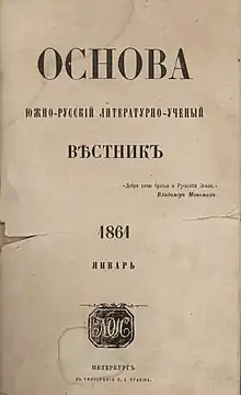 - Див. Основа. Объявление об издании и Программа. Приложение к № 1 за 1861 г. — С. 1.