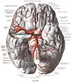 - Anatomy photo:28:09-0204 - "Черепні ямки: артерії, нижня поверхня мозку"