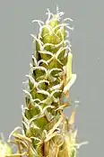 Кореневища короткі. Стебла прямостоячі, не жорсткі, 15–90 см. Листя, як правило, блакитно-лаймово-зеленого кольору, 10–20(-30) см×(1,5-)2–4 мм. Суцвіття 2–15 см×5–10 мм. При довжині близько 5 мм і шириною 4 мм витягнуті еліптичні колоски містять розташовані досить близько від 7 до 18 квітів. Плоди світло-коричневі, довгасто-обернено-яйцюваті, 1,25–1,5×1–1,25 мм. 2n = 56. Річний обсяг виробництва насіння дуже високий.
