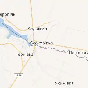 Село Осокорівка знаходиться на правому березі струмка Осокорівка в місці його впадіння в річку Плоска Осокорівка, вище за течією на відстані 2 км розташоване село Першозванівка, нижче за течією на відстані 1 км розташоване село Андріївка, на протилежному березі — село Придолинівка (Вільнянський район). Поруч проходить автомобільна дорога М18 (E105).