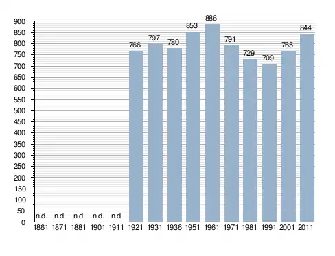 Станом на 31 грудня 2014 року в муніципалітеті офіційно проживало 57 іноземців з 11 країн, серед них 24 громадяни країн Євросоюзу та 1 громадянин України.[4]