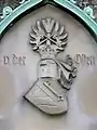 - Фрайгерський (баронський) герб: Щит розтятий і перетятий. У першій і третій чвертях — розтяте поле на синь, перетяту трьома золотими хвилястими перев'язами, і червінь, в якій срібний ключ, кільцем донизу (герб Остенів). У другій і четвертій чвертях — три золоті шестикутні зірки у синьому полі (герб Закенів). У клейноді срібне і червоне крила, між якими височіє червона колона, поверх якої схрещені срібні ключі, увінчана золотим павиним плюмажем, поверх якого золота зірка. Намет червоний, підбитий сріблом.