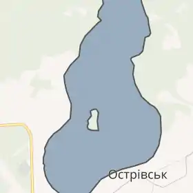 Розташоване поблизу села Острівськ. Довжина 2 км, пересічна ширина 0,7 км, площа водного дзеркала 105,6 га, пересічна глибина 7 м. Улоговина видовжено–овальної форми. Береги піщані, вкриті лісом. Живиться підземними водами. Взимку замерзає. Вода чиста, прозора. Дно піщане, заросло кропивою. Використовується для рибальства[2]. Безстічне[3].