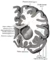 Вінцевий розтин через передній ріг бічних шлуночків.
