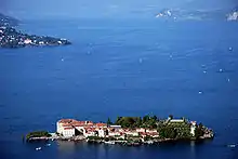 Isola Bella island as seen from Mount Mottarone, standing between Lake Maggiore and Lake Orta, near Stresa.