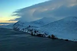 На півночі центральний підвищений масив переходить в Північні гори з рядом поодиноких вершин, що висяться серед тундри (Перша, 503 м; Кит, 417 м; Тундрова, 394 м)[5]. На північному сході — Східне плато (440 м) з рядом окремих вершин (Кругла, 304 м; Ведмежа, 358 м), що слугують своєрідними ориєнтирами[5]. Через плато ведуть ряд перевалів, Нокко (141 м) на заході й Ведмежий (83 м) на сході[5].