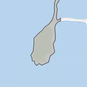 Острів витягнутої форми з півночі на південь, при чому північний кінець набагато звужений. Протяжність острова 780 м, максимальна ширина 240 м, мінімальна всього 20 м. Із сусіднім островом з'єднаний дамбою довжиною 300 м, по якій прокладена ґрунтова дорога.