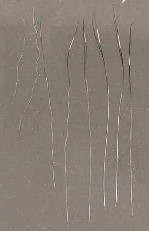Підшерстя (ліворуч) і остьове волосся (праворуч) домашнього смугастого кота