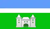 Прямокутне полотнище, яке поділене на три прямокутні частини. Верхня частина – блакитного кольору, середня – білого, нижня – зеленого із маєтком пана Мархоцького по центру. Блакитний колір символізує небо та вдосконалення духу. Білий колір - дорога до маєтку, що веде через ліс та має давню назву «Біла Вежа».