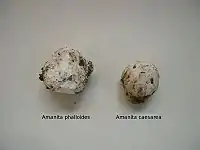 ![]() Amanita phalloides спричинює більшість смертельних отруєнь грибів по всьому світу Amanita phalloides спричинює більшість смертельних отруєнь грибів по всьому світу | |