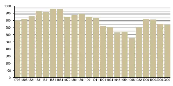 - Cassini : population de 1793 à 1962 ; recensements INSEE de 1968 à 1999. Consultations : octobre 2008., наведено за французькою вікіпедією