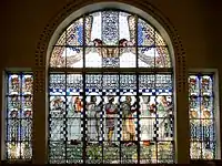 У інтер'єрі склепіння декоровано золотими лініями, що утворюють сітку та золотими заклепками. Підлога викладена білою плиткою із чорним декором, в вигляді квадратів. Щоб забезпечити хорошу видимість з усіх кутків церкви, підлога в сторону вівтаря іде під уклон і знижується приблизно на 30 сантиметрів.