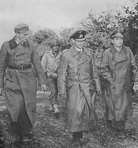 ![]() Зліва направо: Ганс фон дер Мозель, Отто Келер і Ганс Крох під час капітуляції (Брест, 18 вересня 1944). | |||||||||||||||