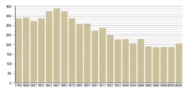 Динаміка населення (base Cassini de l'EHESS pour les nombres retenus jusque 1962[3], base Insee à partir de 1968 (population sans doubles comptes puis population municipale à partir de 2006)[4] · [5] ):