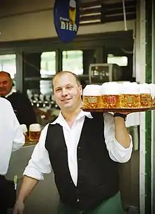 Офіціант, офіціянт, кельнер (лат. officians - службовець) - працівник ресторану, кафе, бару, їдальні, закусочної, підприємства харчування в туристичних комплексах, готелях і на транспорті, що подає страви відвідувачам. В обов'язки офіціанта входить сервірування столу, зустріч відвідувачів, знайомство їх з меню, у разі потреби - поради у виборі страв, одержання замовлення, передача замовлень у гарячий і холодний цехи кухні, пробивання чеків на касовому апараті, доставка замовлення відвідувачу, розрахунок з ним, збір використаного посуду.