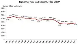 Будівельник, це одна з найнебезпечніших професій у світі, що призводить до більшої смертності на виробництві, ніж у будь-якій іншій галузі як у Європейському Союзі, так і в Сполучених Штатах. 2009 року, смертність від професійних травм серед будівельних робітників, наприклад у США, була майже втричі більшою, ніж для всіх інших працівників. Падіння, є однією з найпоширеніших причин смертельних та несмертельних травм серед будівельників. Належне обладнання задля безпеки, таке як запобіжні пояси та захисні огорожі, а також інші заходи: закріплення драбин та