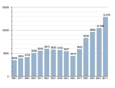 Станом на 31 грудня 2014 року в муніципалітеті офіційно проживав 791 іноземець з 54 країн, серед них 300 громадян країн Євросоюзу та 48 громадян України.[4]