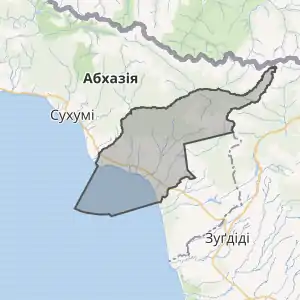 Район на півночі межує з Гульрпським районом, на півдні — з Гальським районом, на сході — з Грузією та Ткварчельським районом, на заході має вихід до Чорного моря.