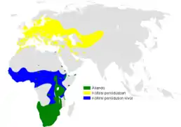 ![]() Ареал поширення виду Гніздування Зимування Осіле проживання | ||||||||||||||||
