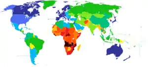 Найвищий показник середньої тривалості життя чоловіків і жінок на початок тисячоліття був серед розвинених країн: Японія (77 і 83 роки відповідно), Ісландія (77 і 81), Швеція (76 і 81); найнижчий серед африканських країн: Замбія (37 років)[3]. Лише в Індії, Пакистані, Бангладеш, Іраку, Непалі, Бутані, Буркіна-Фасо, Папуа — Новій Гвінеї тривалість життя жінок значно менша, ніж у чоловіків[3].