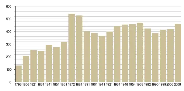 Динаміка населення (base Cassini de l'EHESS pour les nombres retenus jusque 1962[3], base Insee à partir de 1968 (population sans doubles comptes puis population municipale à partir de 2006)[4] · [5] ):