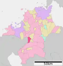 - Хіґашіде М. Історія міст префектури Фукуока. Адміністративний поділ Японії. (японською). Архів оригіналу за 12 липня 2013. Процитовано 20 вересня 2012.