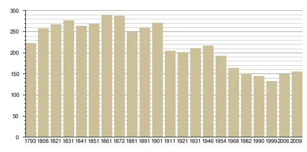 Динаміка населення (base Cassini de l'EHESS pour les nombres retenus jusque 1962[3], base Insee à partir de 1968 (population sans doubles comptes puis population municipale à partir de 2006)[4] · [5] ):