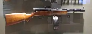 | Тип боєпостачання | коробчатий магазин на 25 патронів барабанний магазин на 73 патрони, пізніше на 71 патрон |