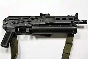 ПП-19 «Бізон» — пістолет-кулемет, розроблений в 1993 році Віктором Михайловичем Калашниковим (сином конструктора М. Т. Калашникова) і Олексієм Драгуновим (сином Є. Ф. Драгунова). Зброя була створено на замовлення МВС на основі конструкції автомата Калашникова АКС-74У (від якого запозичені ствольна коробка і до 60 % інших деталей), однак автоматика працює за рахунок енергії віддачі вільного затвора. Відмінною особливістю цього пістолета-кулемета є циліндричний підствольний магазин ємністю до 64 патронів. Дуловий зріз ствола оснащений компактним полум'ягасником з двома широкими прямокутними вікнами. ствольна накладка пластмасова[5].
