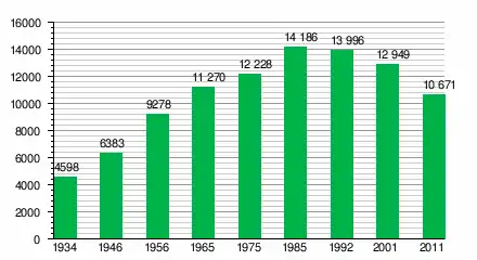 За даними перепису населення 2011 року у місті проживала 10 671 особа.