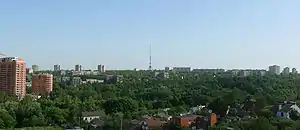 - Харківська телевежа — Розташована в п'ятистах метрах від вулиці Олексія Дерев'янка вглиб лісопарку. Є третьою за висотою (242,5 м) вежею в Україні та найвищою спорудою на території міста. Весь комплекс телецентру запущений в експлуатацію 12 грудня 1981 року. З позначки 140 м і до вершини вежу змонтували з тринадцяти 10-тонних блоків за допомогою вантажних гелікоптерів Мі-10К.
