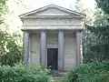 З 1806 по 1819 роки в цьому затишному районі провадилося будівництво пам'ятника-мавзолею на згадку про Павла I. У конкурсі на найкращий проект переміг архітектор Ж. Ф. Тома де Томон). «Мавзолей чоловікові-благодійнику» має вигляд грецького античного храму з чотирьох доричних колон з червоного граніту, що стоять на гранітному подіумі й підтримують фронтон з написом: «Чоловікові-Благодійнику». Усередині храму знаходиться скульптурний монумент, створений І. П. Мартосом, який зображає царствену жінку, що оплакує урну з прахом. На п'єдесталі зображено родину імператора Олександра I.