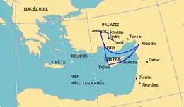 - 45/46: перша міссіонерська подорож на Кіпр і малу Азію