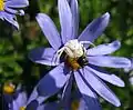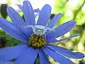 Самиця павука з роду Thomisus сидить у засідці на квітці Felicia