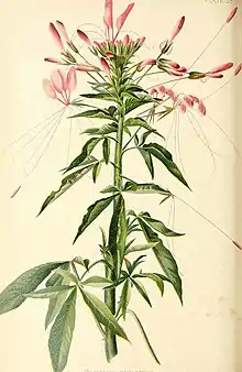 | Cleome spinosa з книги The native flowers and ferns of the United States in their botanical, horticultural, and popular aspects | |