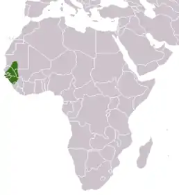 Країни проживання: Гамбія; Гвінея; Гвінея-Бісау; Малі; Мавританія; Сенегал. Цей вид живе в лісі, савані і Сахелі в межах досяжності води. Також мешкає в галерейному лісі й вторинних лісах на півдні свого ареалу.