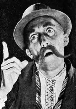 ![]() Паздрій у ролі «Куми», у п'єсі «Народній Малахій», поставленої Ансамблем Українських Акторів, Аугсбург 1946. | ||||