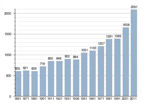 Станом на 31 грудня 2014 року в муніципалітеті офіційно проживало 250 іноземців з 26 країн, серед них 63 громадяни країн Євросоюзу та 4 громадяни України.[4]