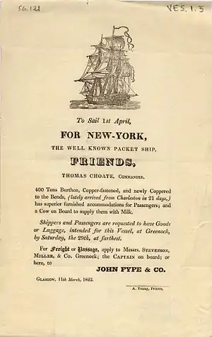 Між 1846 і 1855 роками більше двох мільйонів чоловік на пакет-вітрильниках перетнули Атлантику, здійснюючи рейс за 35-40 днів з Європи до східного узбережжя Північної Америки. Ці кораблі були побудовані для швидких перевезень пасажирів під час великого пориву комерційної діяльності, що супроводжується Промисловою Революцією в XIX столітті і збіглося з піком міграції в Новий Світ. Умови на борту пакетів часто були погані — переповнені, темно, клаустрофобія і такі захворювання, як холера і тиф були частими в приміщеннях з двох'ярусними койками. Пакетні кораблі робили регулярні рейси, — 1000 переходів зроблено з Англії до Північної Америки тільки в 1853 році. Ці кораблі були основними перевізниками для направлень в Новий Світ до 1880 року, коли вітрильні пакети були замінені паровими суднами.[1]