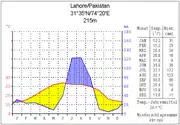 У низинах, середня температура самого холодного місяця січня між 12 °C і 16 °C на півдні змінюються лише вздовж узбережжя, а середньомісячна температура взимку становить до 20 °C. У літні місяці з травня по вересень (за винятком територій на більших висотах) на всій території країни нестерпно спекотно. Середня температура, як правило, близько 30 °C, а в деяких місцях можна зафіксувати навіть граничну температуру в 50 °C. Розподіл опадів вкрай нерівномірний, в загальному, вони знижуються з півночі на південь. Достатню кількість опадів отримує тільки передгір'я Гімалаїв і крайня північ Пенджабу, де їх кількість становить 1000 мм на рік. Лахор же отримує лише близько 500 мм, а в південних штатах Пенджаб і Сінд, менше ніж 200 мм на рік. Дощі випадають майже виключно під час короткого південно-західного мусону у липні і серпні, а в іншу пори року сухо.