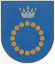 Герб міста зображує корону над бурштиновим намистом на синьому щиті.