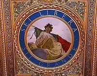 У центрі стелі з античними кофрованими стелями є робота "Овале" одного з найбільших художників італійської історії Giambattista Pittoni (1687-1767) під назвою "Bacco e Arianna". Зал доступний учасникам засідань, а іноді і там відбувається Рада Міністрів.