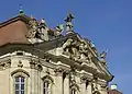 - 1718 року начерно закінчили декорування в палаці. Палац і додаткові споруди вибудували з місцевого світлого пісковику. З нього ж створили і численні скульптурні оздоби. На ними працювали (за припущеннями) скульптор Ніколаус Рош та Букгард Заммельс.