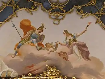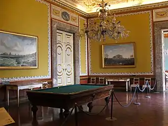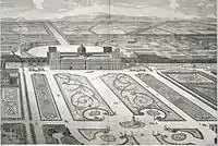 Будівлі: палац, чотири внутрішні двори, палацовий театр, каплиця, військові казарми, приміщення для міністрів, шовкова мануфактура, сад бароко, каскад, фонтани, пейзажний парк | ||||