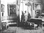 Інтер'єр. Фото приблизно 1913 року. На стіні висять картини(з ліва на право):Клода Моне, Ежена Будена, Поля Ґоґена, Вінсента ван Гога і Альфреда Сіслейя