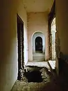 Палац розділений на два корпуси які є практично симетричними. В центральній кімнаті, в яку вів головний вхід та ведуть коридори корпусів збереглася оригінальна старовинна кам'яна плитка та дерев'яна стеля. З центральної кімнати на задній двір виходять три напівкруглі вікна практично у повну висоту будівлі.