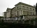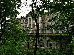 Будівля розташована на нерівномірному ландшафті. Головний фасад палацу складається з двох поверхів, а тиловий, який виходить в парк — з трьох поверхів. Фасади симетричні з трьома ризалітами. Центральний ризаліт головного фасаду прикрашений чотирьохколонним портиком іонічного ордеру та завершується трикутним фронтоном. На рівні першого поверху вздовж будівлі палацу тягнеться галерея на стовпах, над якою на ризалітах розміщені балкони, на кам'яних фігурних консолях. Перед тильним фасадом знаходиться простора тераса, влаштована на склепінню оранжереї, яка знаходиться в самому нижньому поверсі. Планування внутрішніх покоїв — централістичне з розташованою посередині залою. В 1960-х роках палац був незначно перепланований (вестибюль та розміри і рівень вікон другого поверху)