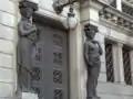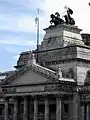 По краях фронтону розташовані скульптури крилатих левів, а на його вершині — герб Аргентини.